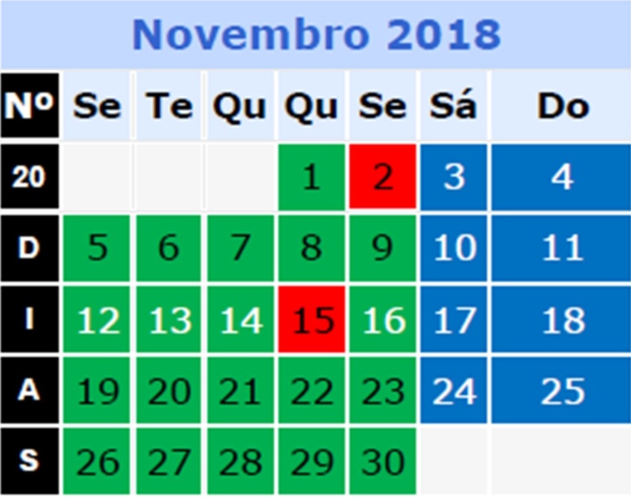 CALENDÁRIO LETIVO 2018